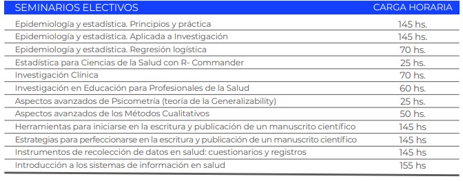 Algunos de los seminarios electivos para elegir dentro del UHIBA, según sus temas de tesis, son: