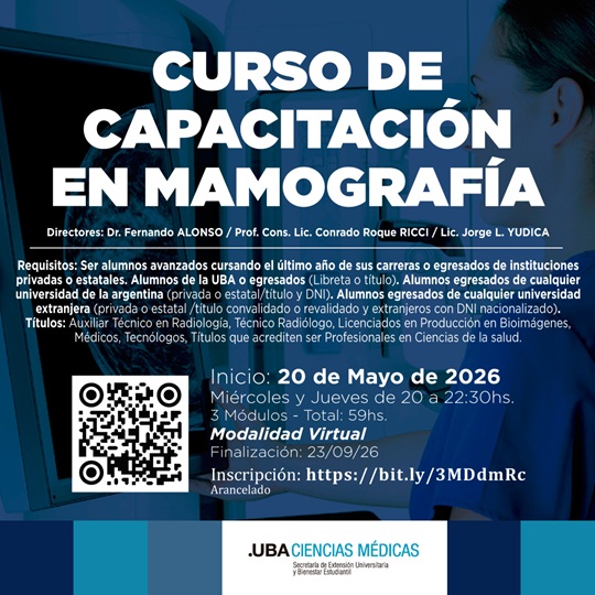 Capacitación en Mamografía es un Curso Extracurricular organizado por la  Secretaría de Extensión Universitaria y Bienestar Estudiantil (seube) Ciencias Médicas. UBA.