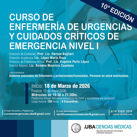 La Secretaría de Extensión Universitaria y Bienestar Estudiantil (seube) Ciencias Médicas – UBA organiza el Curso Extracurricular de Enfermería de Urgencias y Cuidados Críticos de Emergencia “Nivel 1”