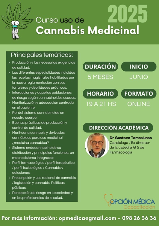 Opción Médica organiza el Curso de Capacitación en Cannabis Medicinal. Quinta edición. Prescripción, seguimiento, ajustes e interacciones. Inicio: junio 2025.