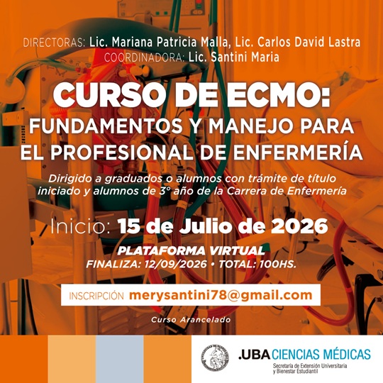 ECMO: Fundamentos y Manejo para el Profesional de Enfermería es un Curso Extracurricular de la Secretaría de Extensión Universitaria y Bienestar Estudiantil (seube) Ciencias Médicas. UBA.