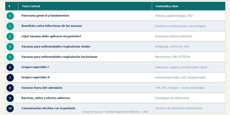 El Consejo de Vacunas de la Sociedad Argentina de Medicina (SAM) invita a participar del Curso de Posgrado Vacunación en Adultos 2026.