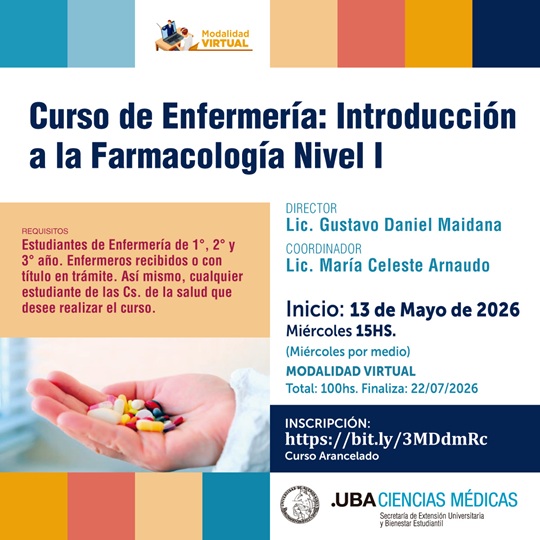 El curso extracurricular Enfermería: Introducción a la Farmacología Nivel I es organizado por la Secretaría de Extensión Universitaria y Bienestar Estudiantil (seube) Ciencias Médicas. UBA