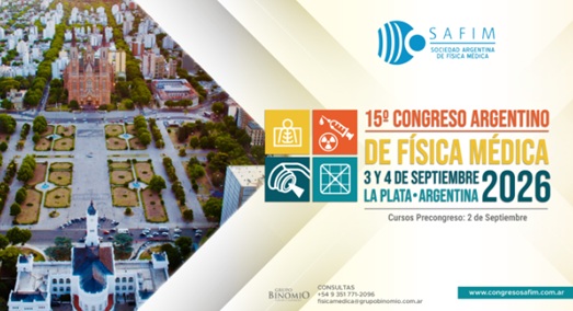 En nombre de la Comisión Directiva de la Sociedad Argentina de Física Médica (SAFIM), tenemos el honor de invitarles al 15° Congreso Argentino de Física Médica, que se realizará en la ciudad de La Plata, los días 3 y 4 de septiembre de 2026, con cursos precongreso programados para el 2 de septiembre.