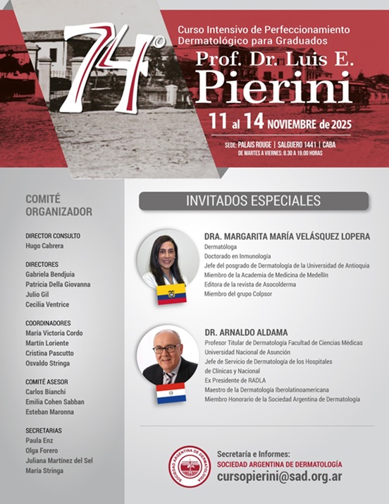 La Sociedad Argentina de Dermatología (SAD) desarrollará el 74° Curso Pierini – Curso Intensivo de Perfeccionamiento Dermatológico para Graduados Prof. Dr. Luis E. Pierini –