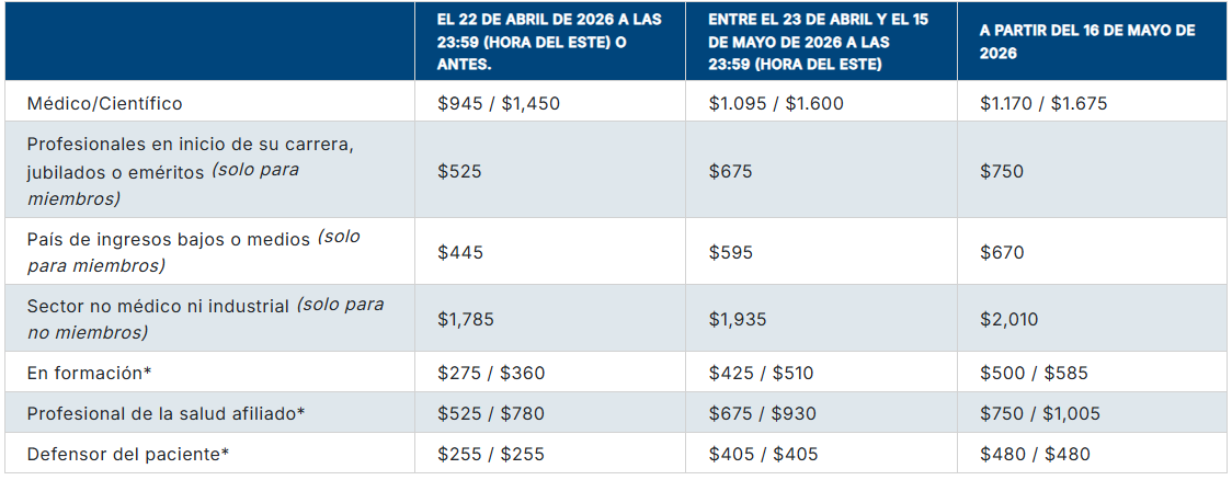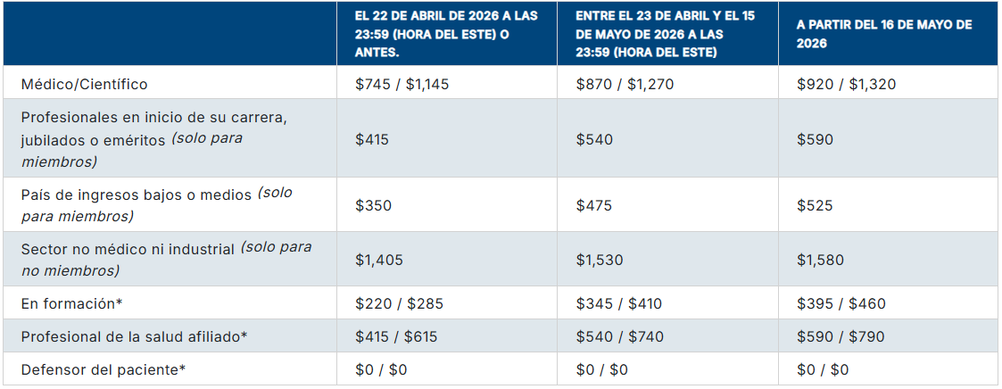 Fecha límite para reservas de hotel e inscripción anticipada: 22 de abril de 2026.