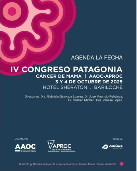 La Asociación Argentina de Oncología Clínica (AAOC) y la Asociación Patagónica de Radiólogos y Oncólogos Clínicos (APROC) organizan el IV Congreso Patagonia – Cáncer de Mama.