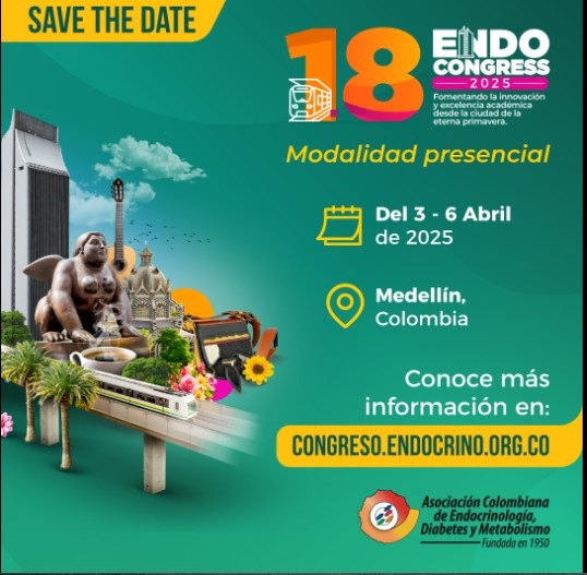 La Asociación Colombiana de Endocrinología, Diabetes y Metabolismo organiza el 18° ENDOCONGRESS del 03 al 06 de abril de 2025. Sede: Plaza Mayor Medellín – Convenciones y Exposiciones.